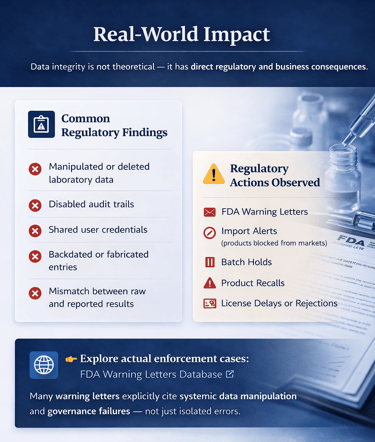 Data integrity is not theoretical — it has direct regulatory and business consequences.